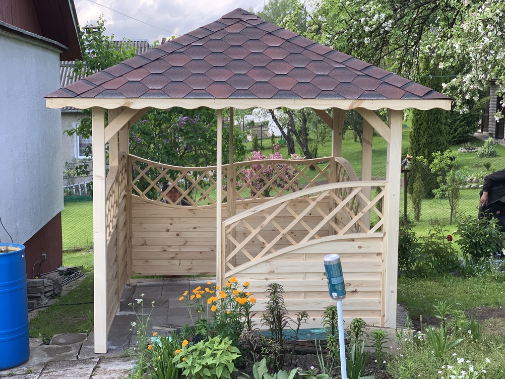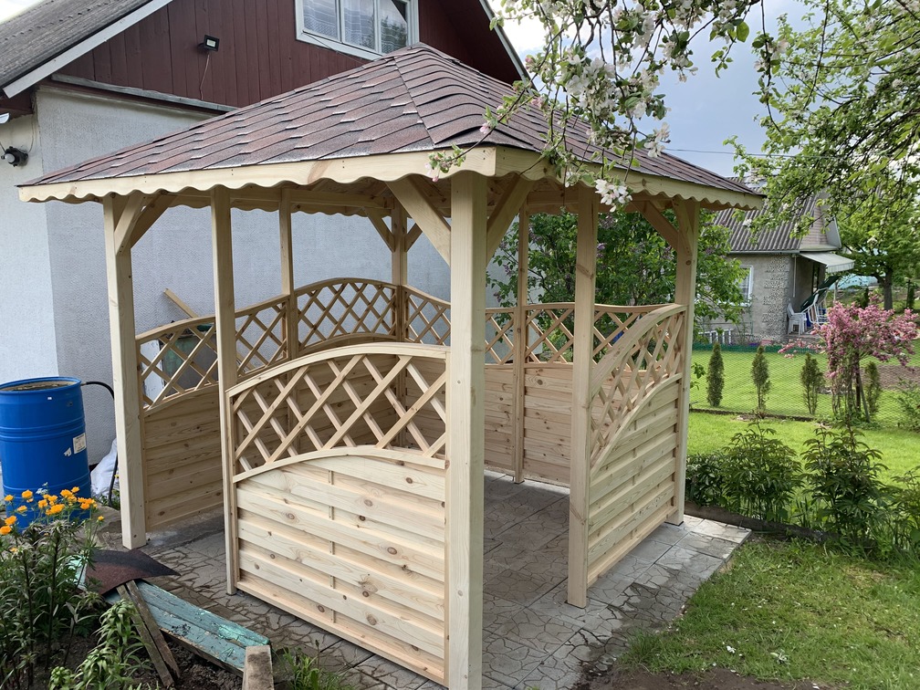 Цена - от 1230 бел.руб. (в зависимости от размера беседки и расстояния до ее установки)