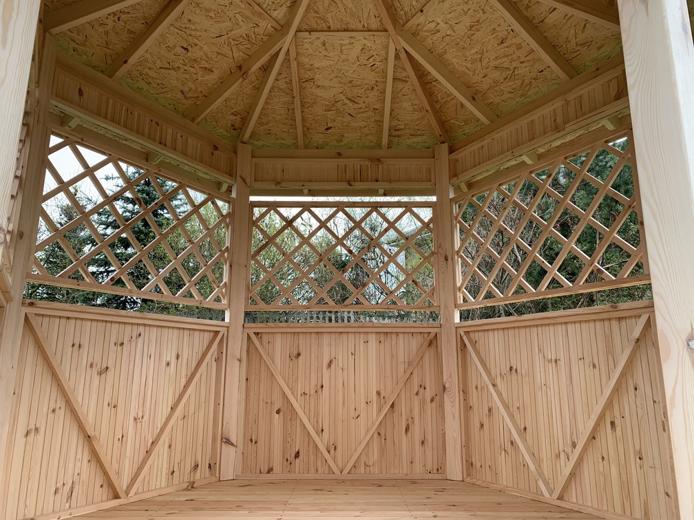 Потолок: потолок беседки подшит OSB плитой (входит в стоимость).